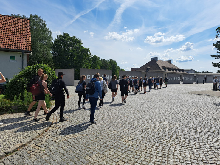 Am Dienstag, den 12.07.2023 besuchten alle Schülerinnen und Schüler der 9. Jahrgangsstufe das ehemalige Konzentrationslager Sachsenhausen in Oranienburg bei Berlin. Da wir auf der Hinfahrt mit dem Bus in eine amtliche Kontrolle gerieten, hatten wir leider nur 90 Minuten für unsere Führung. Die 4 Gruppen wurden durch kompetente Guides über das Gelände geführt. Dabei hatten die Schülerinnen und Schüler immer wieder Gelegenheit ihre Fragen zu stellen und auch ihr Wissen aus dem Unterricht und dem Vorbereitungstag am Montag einzubringen.